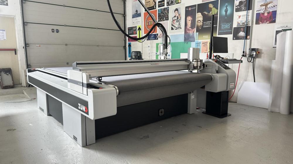 Grâce au 320 x 210 cm de disponible elle pourra couper adhésifs, PVC, plexi, dibond, carton, mousse acrylique, bâche, toile, mesh, lino et bien d’autres à la convenance et suivant les impératifs du client.